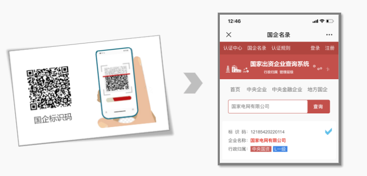 3、企業(yè)掛碼:國企ID二維碼,放置在網(wǎng)頁、名片、簡介、產(chǎn)品標簽中,掃碼驗證。